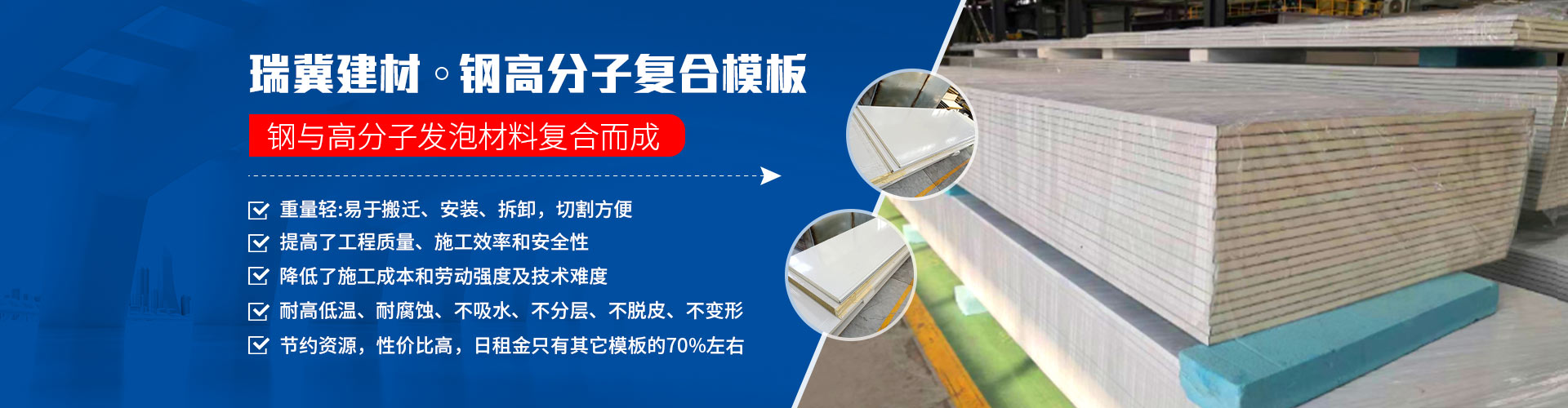 公司主要經(jīng)營(yíng):新型建筑材料“鋼高分子復(fù)合模板”和流水線(xiàn)生產(chǎn)專(zhuān)用設(shè)備兩項(xiàng)產(chǎn)品的制造、銷(xiāo)售和技術(shù)服務(wù)、咨詢(xún)、轉(zhuǎn)讓及模板租賃業(yè)務(wù)的全國(guó)合作經(jīng)營(yíng)。公司擁有一支具有豐富經(jīng)驗(yàn)的專(zhuān)業(yè)團(tuán)隊(duì),與公司攜手共進(jìn),秉承“經(jīng)營(yíng)之道,不忘初心;客戶(hù)至上,誠(chéng)實(shí)守信;嚴(yán)謹(jǐn)務(wù)實(shí),科技創(chuàng)新;拼搏進(jìn)取,合作共贏(yíng)”的理念,全面構(gòu)架經(jīng)營(yíng),不斷推動(dòng)公司的發(fā)展。
