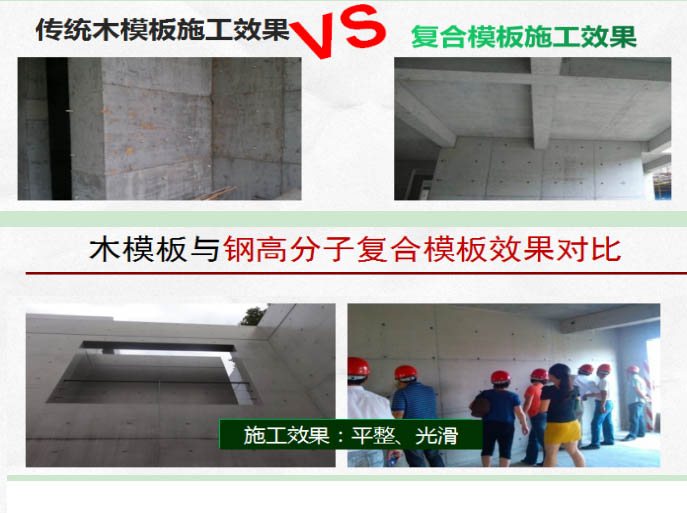 鋼高分子復(fù)合模板--使用后墻面與木模板的效果對(duì)比